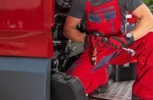 Truck Mechanic with Professional Wrench in His Hands